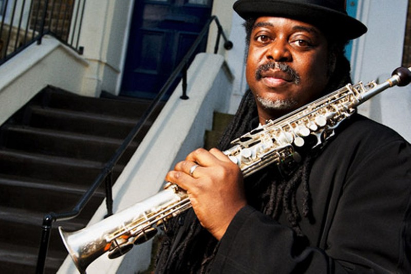 “My name is Courtney Pine, and I love jazz,” was his introduction. His performance was full of humour and playfulness, such as the moment when he paused to make the final note of a tune but then said “Nah!” and left it unresolved, and the way he inserted cheeky quotes into some of the tunes, snatches of ‘Smoke Gets In Your Eyes’ or ‘God Rest Ye Merry Gentlemen’, or Bach’s Toccata in D. You may think that is a jazz cliché, and of course it is, but we’re in a post-modern era where eclectic nods and references are to be expected. So in one number he pushed it to the very limit, quoting from Prokofiev’s Peter and the Wolf, Gilbert & Sullivan’s Pirates of Penzance, two Glenn Miller tunes, Acker Bilk’s ‘Stranger On The Shore’, and ‘There’s No Place Like Home’. The set was full of standards and recognisable song tunes such as “A Nightingale Sang In Barclay Square’, Donny Hathaway’s ‘Some Day We’ll All Be Free’, Duke Ellington’s ‘Come Sunday’, and ‘Girl Talk’. The latter was shouty, full of R&B-style blowing. Alongside these were treatments of old-timey faith-songs. There was the Olney hymn ‘Amazing Grace’, and the spirituals ‘Sometimes I Feel Like A Motherless Child’ and ‘Let My People Go’. I think ‘Let My People Go’ was my favourite number of the night – at least it was right up until the duo gave us ‘A Child Is Born’ by Thad Jones and Alec Wilder, which they graced with a beautiful, lyrical treatment.