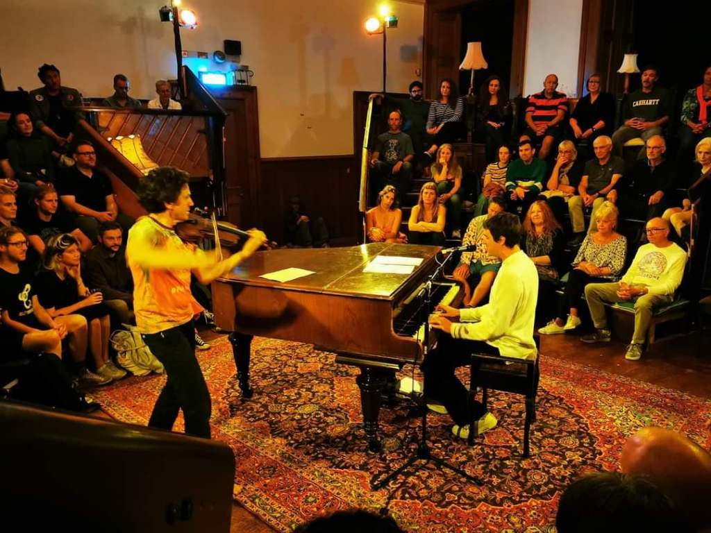 Pianodrome. an ‘iconic symbol of community and cultural resilience in Scotlands Capital’ even if they say so themselves, have set up at the New Parliament Old School buildings up on Calton. Hill. The forty something up cycled piano amphitheatre that is Pianodrome fits cosily into the old debating chamber. The mini colosseum lending an apt intensity to the quiet drama of Daniel McGeever’s pianoing and Dowally’s choice meanderama about the range of their musical mapo mundi.