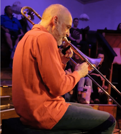 Filling in for Jimmy Page or John Bonham is a bit of a reach but these boys manage. Chris reckons he was lucky that Zep didn’t have a trombonist. I reckon it is Robert Plant and John Paul Jones who were lucky Zep didn’t have a trombonist or they’d be playing in the Royal Oak.