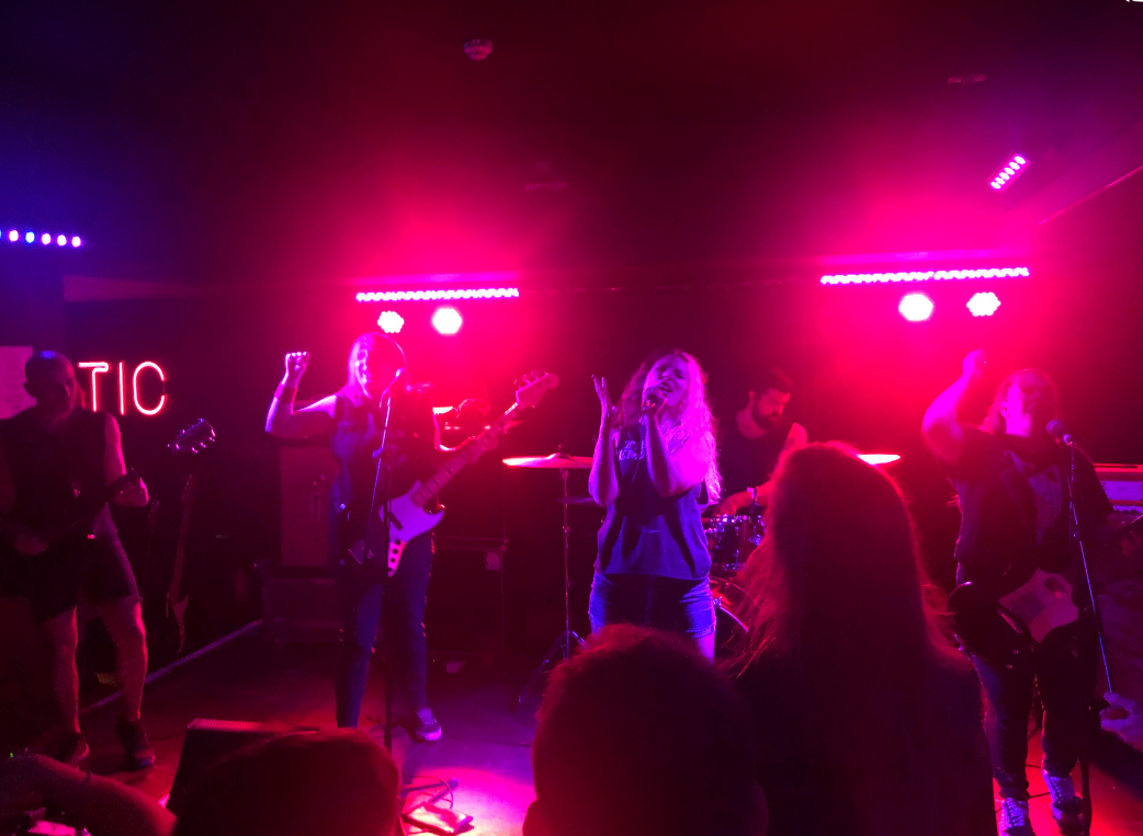 Baltimore’s War On Women are led by Shawna Potter, her hair dyed brunette & blonde – half one side, half the other – & she flings & shakes it into the audience almost like a weapon, an absolute hypnotizing & psychedelic sight! Behind her are the band – a male drummer, a male guitarist, a female bass player who sneers with menace & a female guitarist with a constant glad-to-be-here grin on her face.