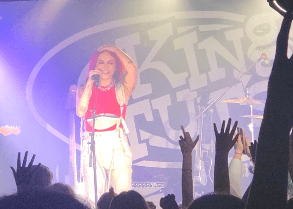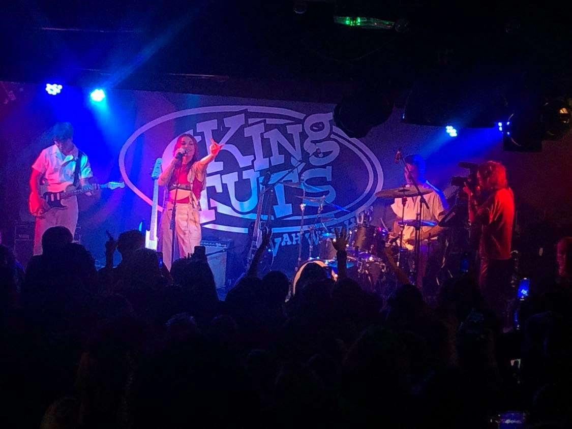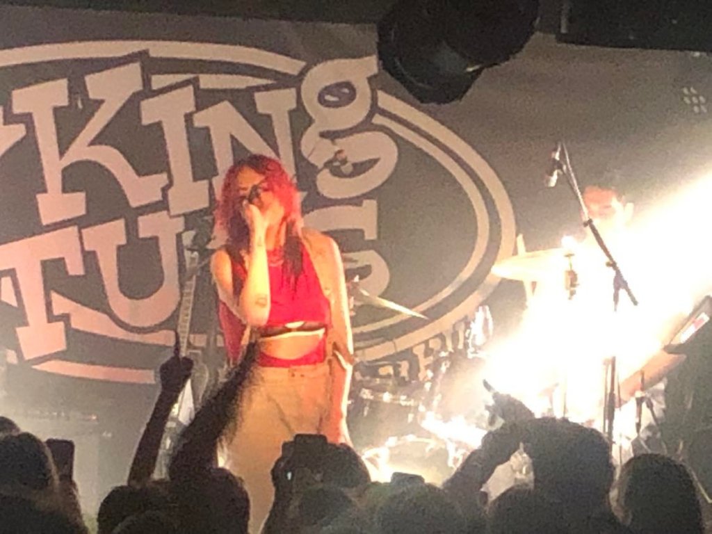 Last night I witness’d the rebirth of a dungaree-clad, amazing looking, sandpaper-glam Venus, rising gloriously from her oyster shell singing all manner of bangin’ tunes. It was Upsahl’s first ever day in Scotland on her ‘This Is My First Headline Tour’ tour, & I was swiftly moulded into groove-crunching appreciation by the drama play’d out before me. She is a cut above, like, & supported by just a drummer & a guitarist – gutsy groove machines in their own right – & sometimes picking up a bass or a guitar herself, the comblended sound is that of an epic flight of eagles.