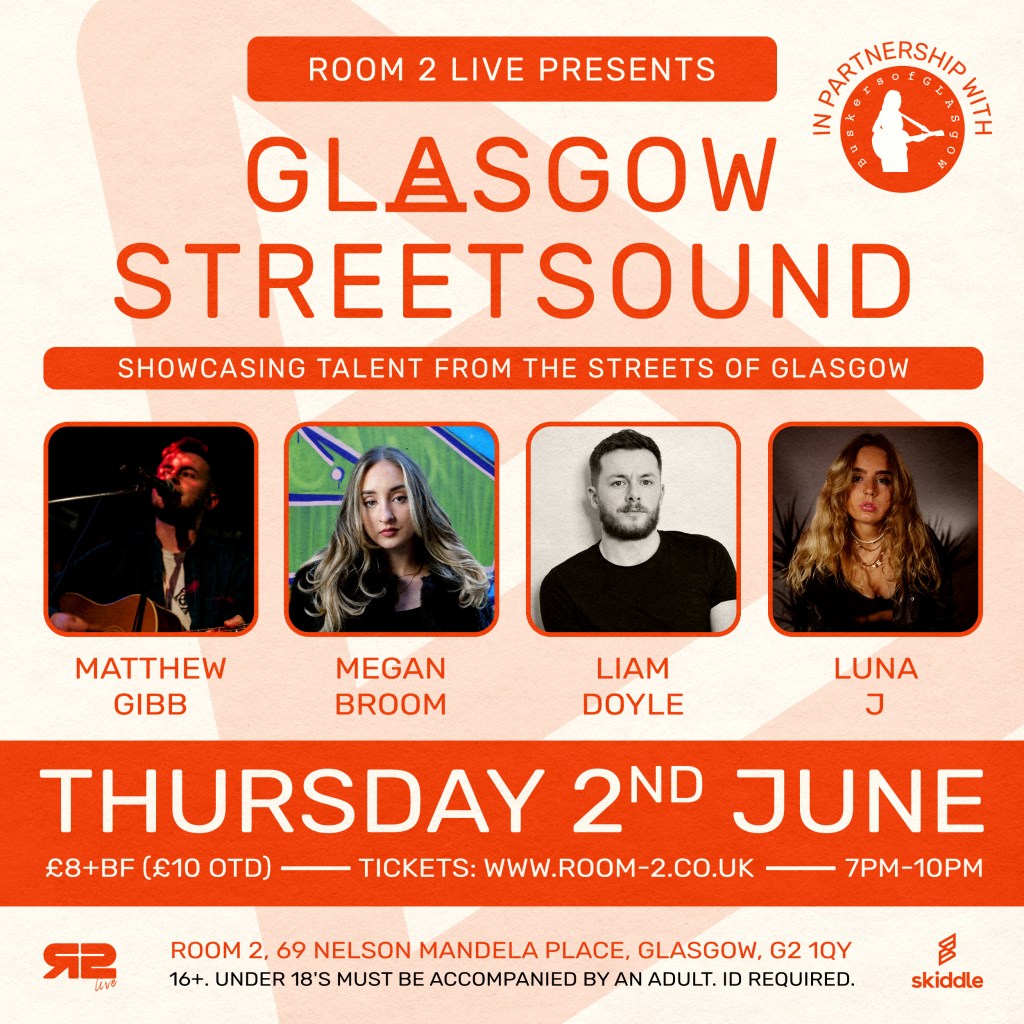 4 musical acts were to perform in a night about City streets (Glasgow) & busking. Room 2 is a great venue and there was a special soul at the place last night. It’s special in that its layout was so well designed so that it can be host to any and every form of music there is. The night may prove beneficial for the ever so personal acts, all of whom stayed wonderfully in character, an evening for guitar and vocals, to own the stage in its also decent proportions.