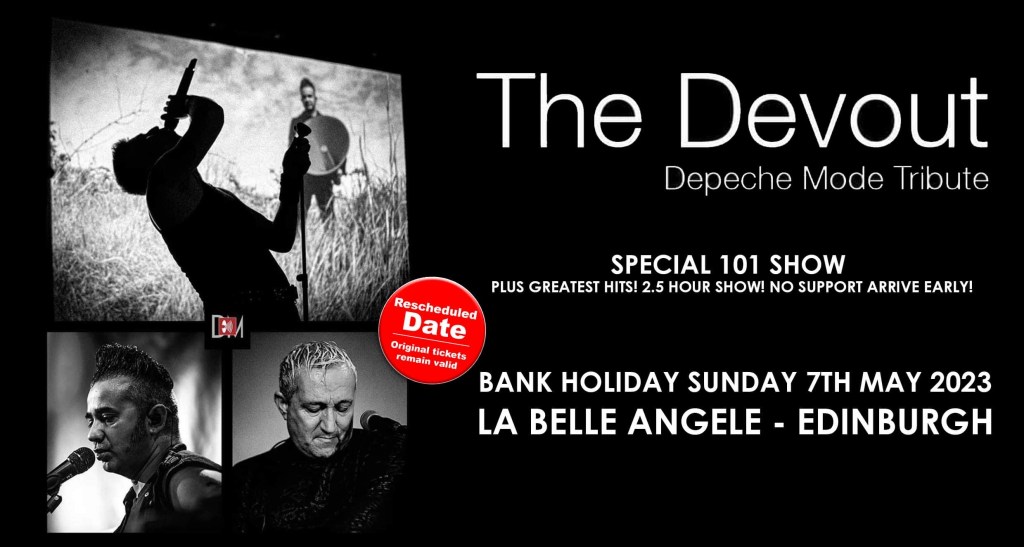 It was my friend Rosco that contacted me a couple of weeks ago to tell me about “Devout” The Depeche Mode Tribute Band. Performing the album 101 in its entirety live at la Belle Angele in Edinburgh. Rosco has a ticket for Depeche Mode in Dublin on the current tour, And for reasons that I have already stated and of course not having the readies to purchase a ticket or travel funds. to see the present incarnation of Depeche Mode. He asked me if I fancied going to see Devout, the Depeche Mode Tribute. Performing all of the songs that I experienced back in 1988. of course it was a no brainer. Yes of course. But let me contact The Mumble first to see if I can get a review ticket.