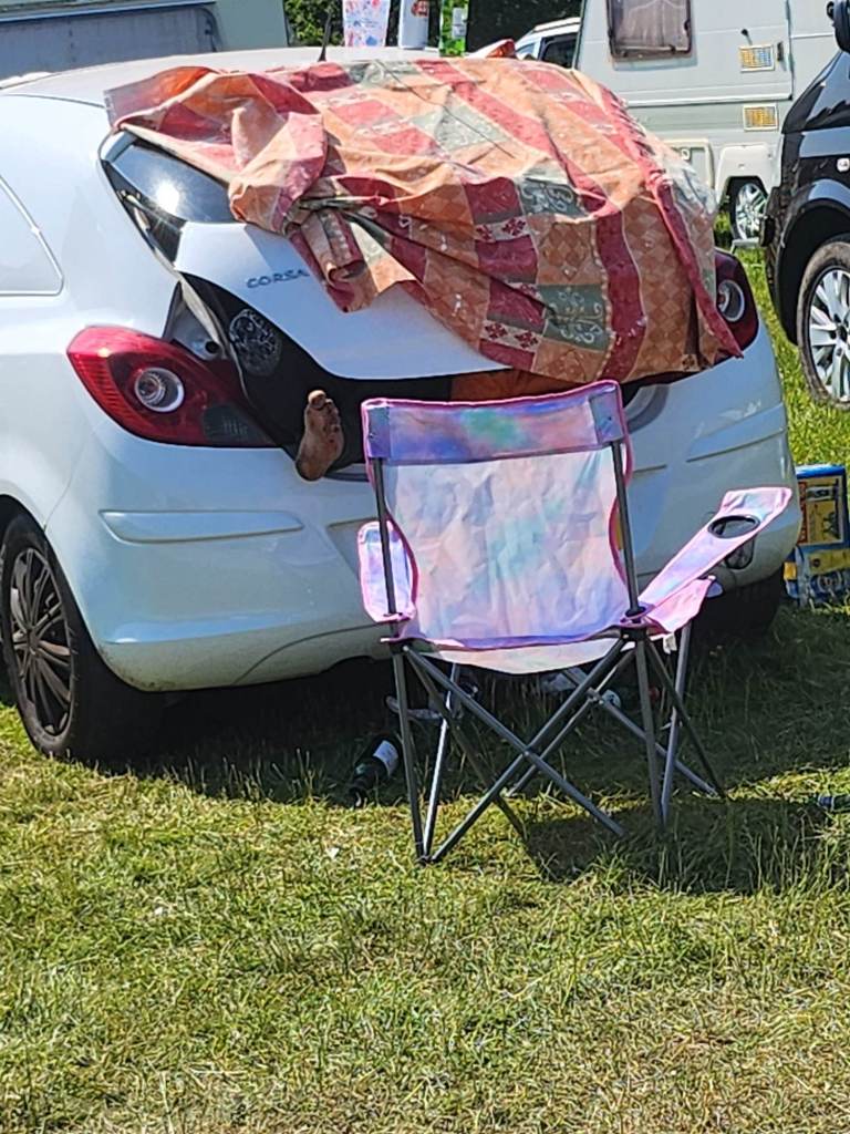 The Saturday morning sun rose & began sending x-ray heat into the tents, so better off up & out then, innit. And on it we got. I mean, its beautiful weather, everyone’s had a great first night, with the promise of a lot more japes & hijinks to come. Why potter about having a cup of tea & a butty, let’s get that sambuca out – I can eat when I get ‘ome.