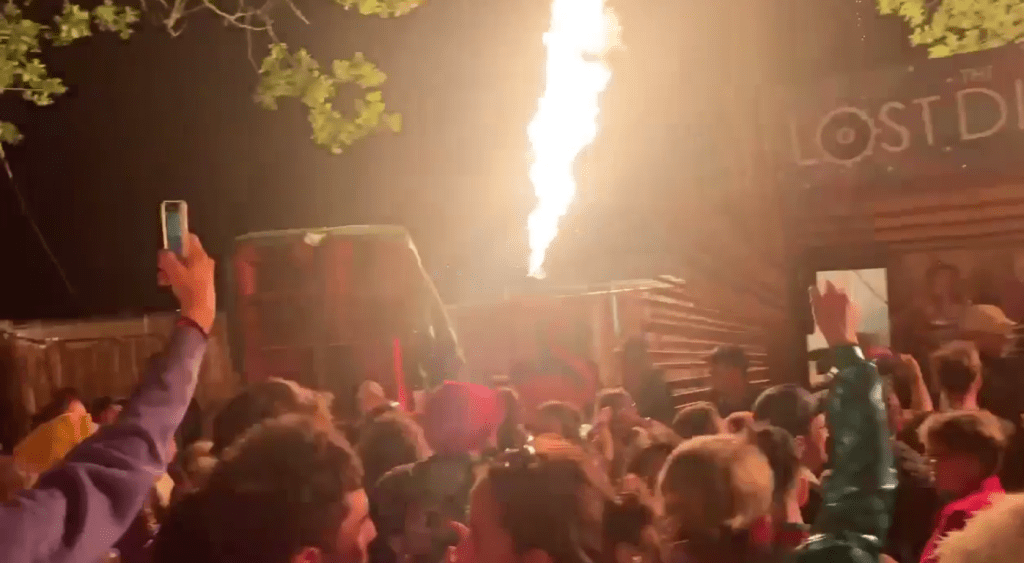 The instruction I had received was to let the fire die out and not put any more wood on the flame. So was a little surprised to find a volunteer had turned the sacred fireplace into his living room, had a fire going and was doing his clothes washing, heating the water with the fire by using empty tin cans. He told me he was tripping on Mushrooms?????? While looking after a fire that was supposed to be out. Its been a while since I had met such a rude arrogant arsehole. He said that security had ok’d the fire. So I went for breakfast and then headed to get my high viz because I didn’t trust this person. He was most perturbed that I had joined him for my shift. I rolled a fag put my baccy down, turned my back and he knicked my baccy. There were only two of us in the fire place so it couldn’t have been anyone else. Then he started being more aggressive towards me and started on a rant about his hatred of trans people. I just kept quiet until The Firemen arrived and put his fire out. He was not happy about that.
