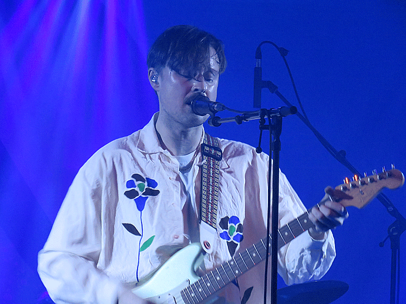 With a clean white dress code, that any Daz or Ariel advert would be proud off and with the added eye catching flower and Panther designs, their shirts were hitting the style scene as much as their music was. I have never personally liked to compare artists and their music but everyone has been influenced at some point in their career by someone or some band and Django Django are no different. I myself could see sprinklings of Franz Ferdinand , Hot Chip, Groove Armada , Daft Punk and Devo creeping into their music. A fusion of dance, rock, electro, and unique drumming throw up a concoction of awesome beats.